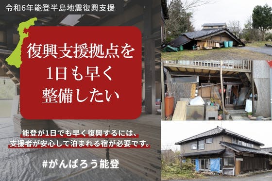 今、被災地の支援者が宿泊できる、復興拠点となる宿が圧倒的に足りていません。大好きな能登のため、私たちがDIYに取り組んできた古民家宿を、自分たちの手で復興支援拠...