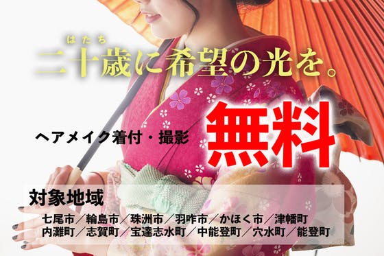 令和6年能登半島震災で「二十歳のつどい(旧称:成人式)」が中止になった地域の20歳の方々に、無料で写真撮影を提供してあげたい!