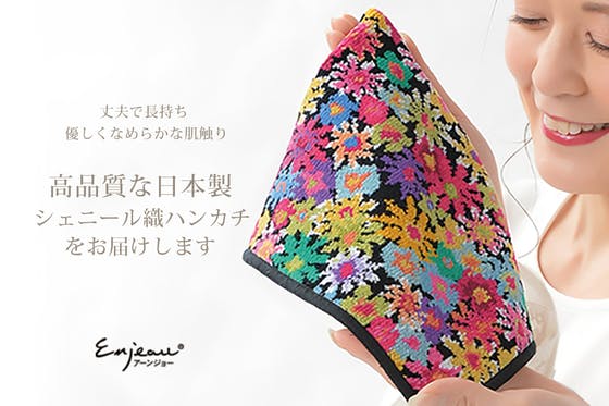 当社は日本製シェニール織ハンカチのリーディングカンパニーです。だからこそ日本製シェニール織の良さや歴史的背景を広く伝えるともに、古くからある花柄とはまた違う柄を...