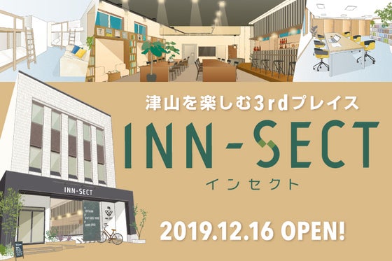 2019年12月16日、岡山県津山市に、津山を楽しむサードプレイス「INN-SECT(インセクト)」をオープンします!カフェ・バー、宿泊ゲストハウス、コワーキン...