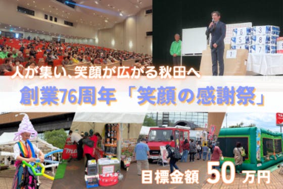 創業76周年の感謝を込めた「笑顔の感謝祭」を、地域の皆様と開催したい。イベント運営費や出店料無料のチャレンジマルシェ開催費用などの必要資金を集めています。少子高...