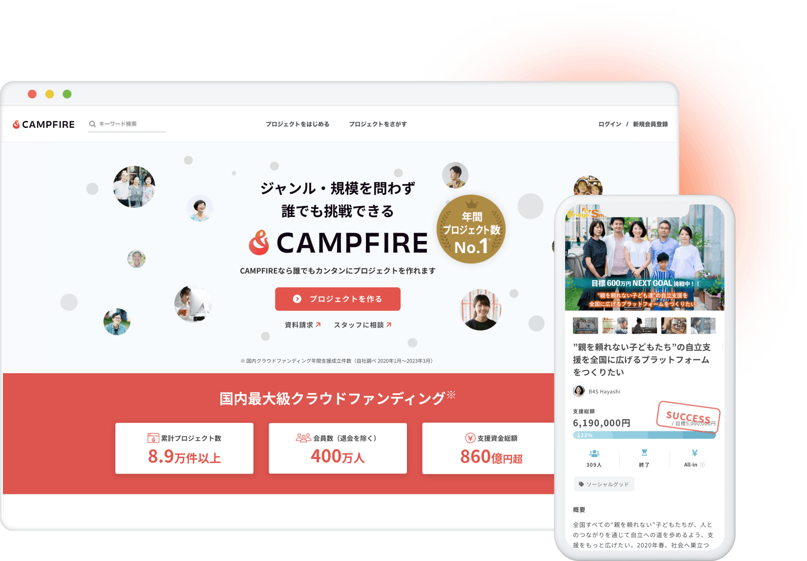 プロジェクトの掲載には一切費用がかかりません。発生する費用は達成した合計支援額に対する手数料のみなので、安心してプロジェクトを始められます。