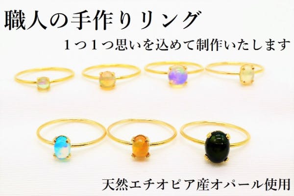 「幸運の石」で皆に元気を!職人による手作りエチオピアンオパール華奢リング