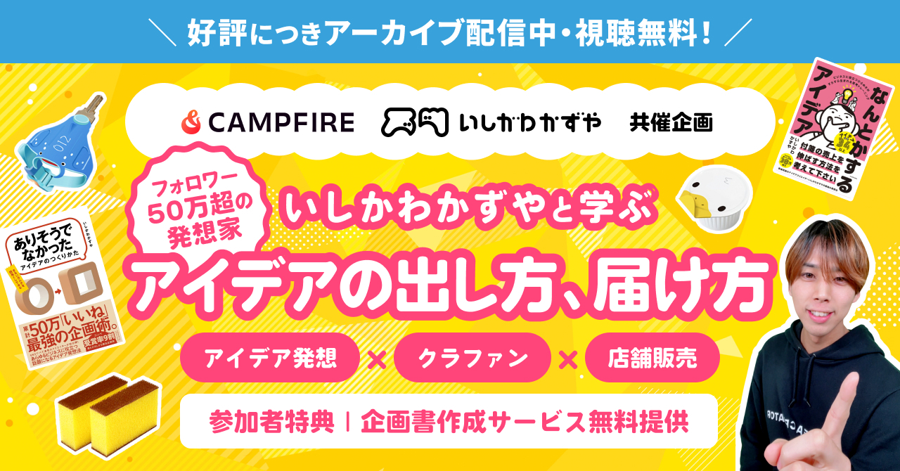 いしかわかずやのアイデアクリエイターズクラブ|https://community.camp-fire.jp/projects/view/608578
