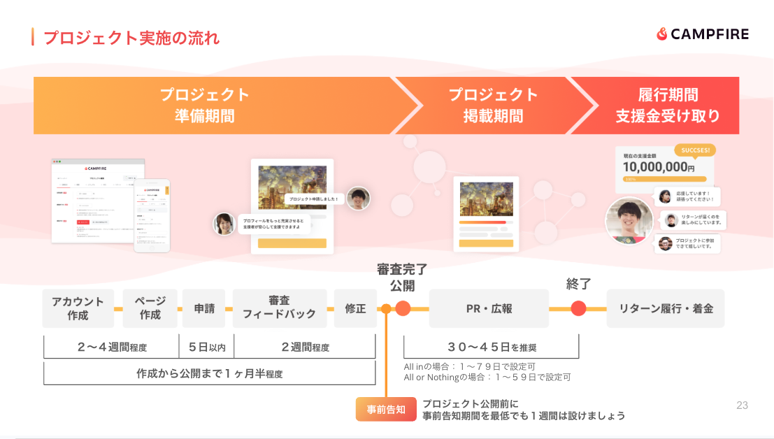 - クラファン準備〜支援金受け取りまでのスケジュール