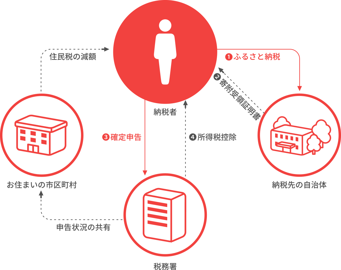 ① ふるさと納税は、自治体に「寄附」を行うことで、自分が収めるべき所得税、住民税の控除を受ける仕組みです。そのため、「ふるさと納税」という名前ではありますが、実は自治体への「寄附」になるのです。