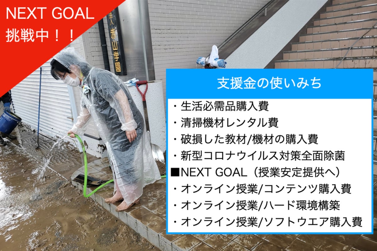 【ネクストゴール目標300万円挑戦中】 人吉市は河川が氾濫しました。 それにより私たちの学校も浸水し多大なる被害が発生しております。全国各地よりお電話やDMを...