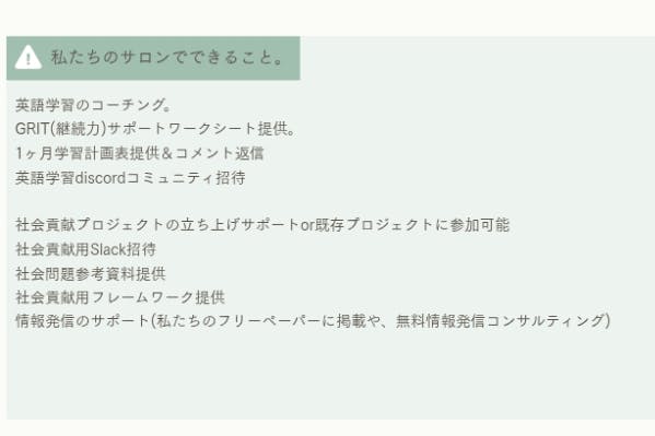 英語学習をして、英語を社会貢献に利用するコミュニティです。学習のGRIT(継続力)をサポートするコーチングから、社会貢献プロジェクトへの参加、プロジェクトの新規...