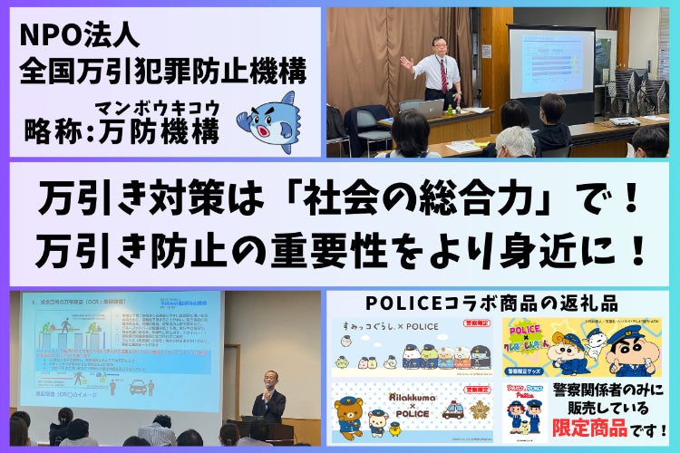 NPO法人全国万引犯罪防止機構は、万引き防止の観点から社会の安全安心を実現するために活動しています。啓発活動として、全国の中学校に万引き防止ポスターや中学1年...