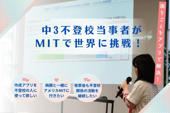 不登校の経験から「不登校の人が近隣でリアルに交流できるアプリ」を開発し、全国大会でグランプリを獲得!この夏、アメリカMITサミットで発表します。アプリの社会実装...