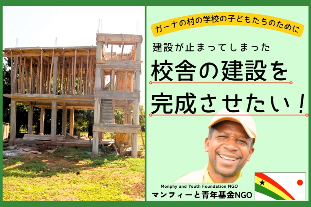 私たちはガーナで無料で学べる学校の運営や、物資支援をしている小さなNGOです。現在運営している学校に、トイレ・図書室・パソコン室を備えた別棟の建設再開、そして完...
