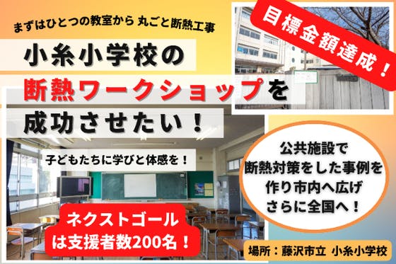 夏は涼しく冬は暖かく過ごせる!そんな断熱の理解を広めたい。その想いから藤沢市立小糸小学校の多目的教室で、子どもたちが参加・実体験できる断熱ワークショップを開催します。本プロジェクトを通じて断熱の輪が広がり、脱炭素の取組としても藤沢市の公共施設の新設・改築時には断熱は必須になってほしい!