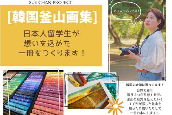 ヒーリングの街 ”釜山”。 私が感じた”釜山”を描いたり撮ったりしたものを一冊の本に。 どこか懐かしくてあたたかい釜山の魅力を一人でも多くの人に伝えたい。 ...