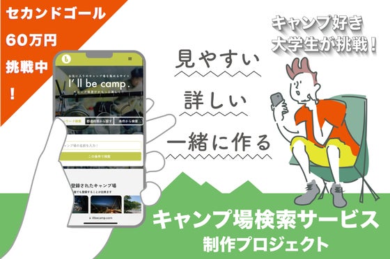 \キャンプが大好きな京都の大学生4人が、日本全国のキャンプ場データベースを完成させます!/開発中のサービス「アイルビーキャンプ」では、こんなキャンプ場に行ってみ...