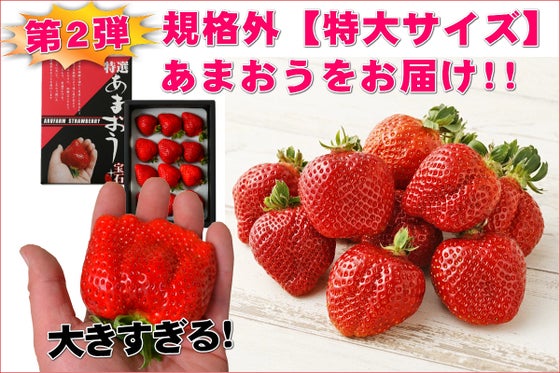 ご好評につき第2弾開催!前回390%達成!! 大きすぎて出荷できない規格外あまおうをお届けしたい。ビックリするほどの超特大サイズのあまおうですが、味もうまみも...