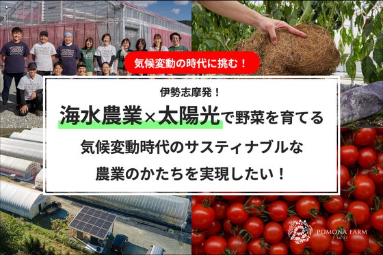 三重県の多気郡の農業生産法人Pomona Farmが、これまで培ってきた栽培技術を世界最高水準まで進化させた「海水農業」と「太陽光エネルギー」を使い、気候変動が...