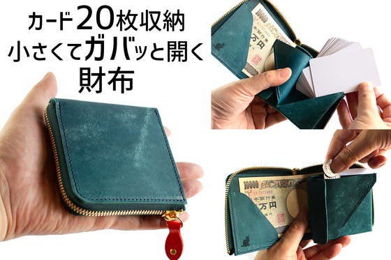 カードをたくさん収納できる小型サイズのL字ファスナー財布。ファスナーを開けばガバっと大きく開いて、中身は一目瞭然。小銭入れは、大きなポケットに投げ入れて簡単に収...