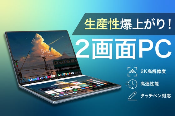 13.5インチデュアルディスプレイノートPC「DXUSCREEN」複数のソフトやウィンドウを同時に開き、作業効率を最大限に引き出せるデュアルスクリーンデザイン。