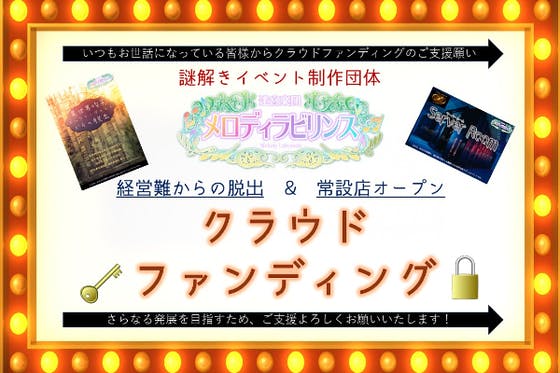 新型コロナウイルスの影響により、大きく経営状況が変化してしまいました。さらなる楽しい体験型ゲームをお届けするため、皆様にお力添えをお願いしたく、このたびクラウド...