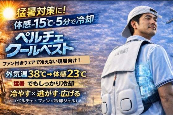 猛暑でも“即冷却 -15℃” ファン付きウェアが効かない現場のための「ペルチェ クールベスト」! 外気温に左右されない“直接冷却”で熱中症リスクを解消