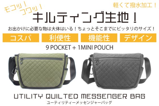 お出かけに必要な物は大体入る!ちょっとそこまでにピッタリのサイズ!モコフワな撥水キルティング生地のメッセンジャーバッグ!ポケットは9つ+移動可能なポーチとオリジ...