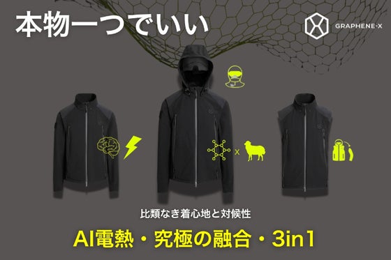 本当にこれ一着でOKのギアが誕生しました。 高熱伝導グラフェンによる電気発熱とAIアプリ制御で温度を自在に操る着るテクノロジー。袖・フード着脱の3in1モジュ...