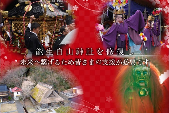 能生白山神社は702年創建の由緒ある神社で、地域の誇りであり文化遺産です。しかし、風雨に晒され茅葺屋根が老朽化しています。700万円の修復資金を目標に、未来へ繋...