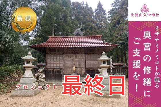 比婆山久米神社を大切に思う皆さん、改めてクラウドファンディングにチャレンジします。2023年からスタートした今プロジェクト。当初目指していた修繕・改修まであとわ...