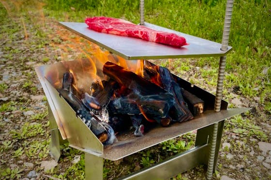 アイデアと欲しいをカタチにした ”こだわりの野営道具” をあなたに!組み立てカンタンA4サイズのステンレス製焚き火台、位置変更により火加減調整が可能な極厚A4サ...