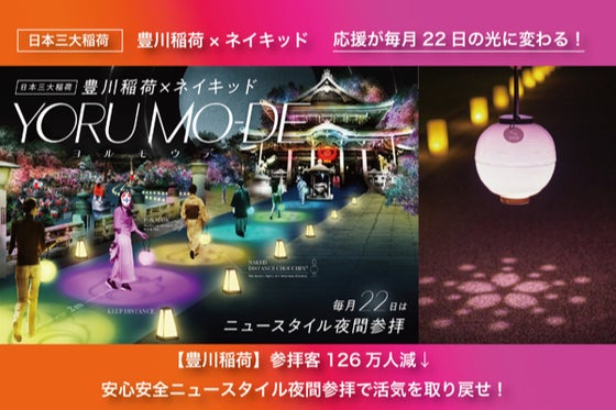 新型コロナウイルス感染拡大により、まちが経済的ダメージを追った事を機に、2021年7月より豊川稲荷にて毎月定期開催され、延べ5万人以上来場実績を誇る、夜間参拝ヨ...