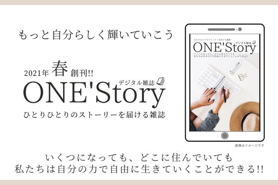 ひとりひとりのストーリーを届けるデジタル雑誌『ONE'Story』を創刊します!!自分の力で輝ける女性を増やす雑誌出版プロジェクト!!いくつになっても、どこに住...
