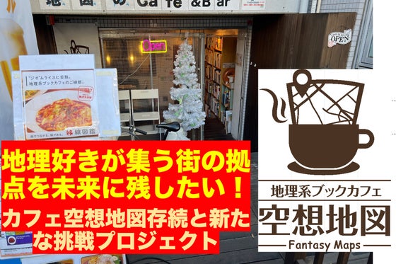 地図と本に囲まれた、地理好きのための小さなカフェ「空想地図」。この場所をこれからも続けていくため、運営資金と次の新しい企画づくりを目的にクラウドファンティングに...