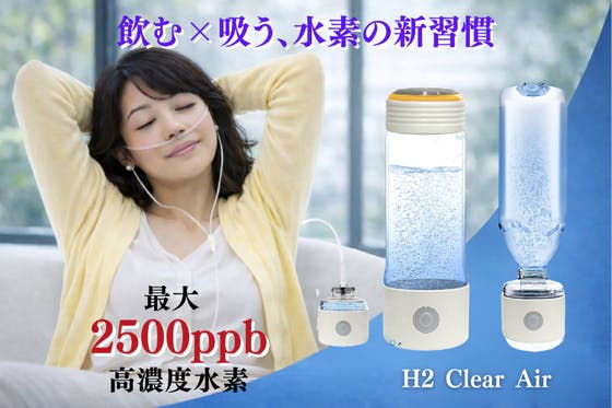 「鼻から直接取り込む“水素Air”という新習慣へ!」水素水生成ボトル「H2 Clear」に、Airを直接吸入できる専用アタッチメントを搭載。更にペットボトルも使...