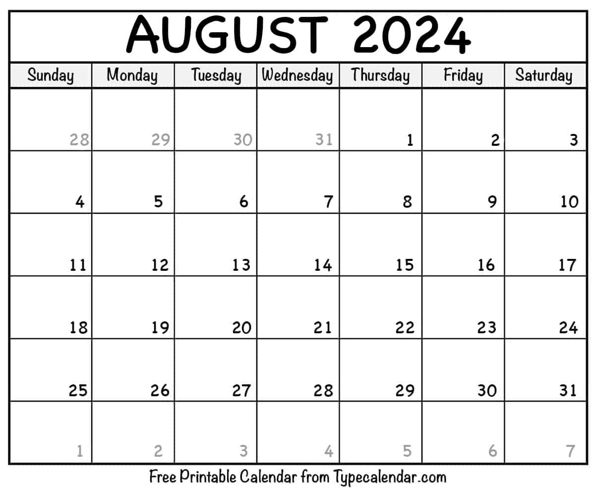 Our free printable template for the August 2024 calendar is here! This efficient calendar will help you organize your plans as the summer season winds down. August is the perfect time to make the most of the remaining summer days with vacations, barbecues, beach outings, and more. Download our free August 2024 calendar template now and begin planning your end-of-summer activities! Whether you’re preparing for holidays, attending events, or just enjoying the warmest days of the year, this calendar has you covered. Designed with the vibrancy and energy of summer, our August 2024 calendar ensures you won’t miss any important dates. It’s available in a convenient PDF format, perfect for printing or digital use. Plan your days, weeks, and weekends efficiently with this versatile calendar. Ideal for both personal and professional organization, our printable August 2024 calendar helps you keep track of all your important events and meetings. Download it for free and make every moment in August count. With our free August 2024 calendar template, you can maximize your summer planning. From beach trips to outdoor concerts and family gatherings, this calendar will help you stay organized and on top of your schedule. Don’t miss out on this easy-to-use and downloadable calendar to enhance your summer experience. Contact Information: Website: https://www.typecalendar.com/august-calendar.html Address: 123 Maple Avenue, Boulder, CO 80301 Phone: (303) 555-9876 Hashtag: #august2024 #printablecalendar #augustcalendar #2024calendar #freeprintable
