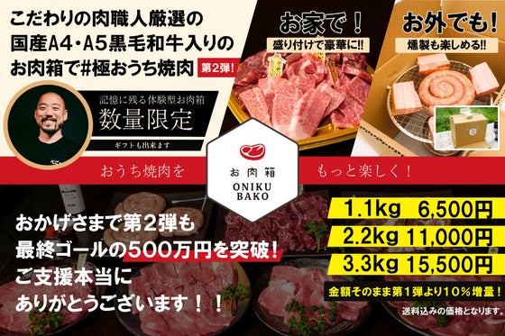 ①「#極おうち焼肉」企画第2弾!こだわりの肉職人厳選の国産A4・A5黒毛和牛入りシーン別で色々楽しめるお肉箱‼②美味しいだけじゃない!「記憶に残る体験型お肉箱」...