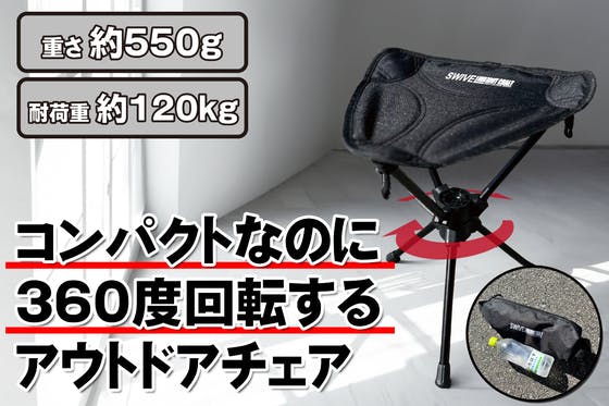 座面が360度自由に回転し、携帯性にも優れた使い勝手の良いチェア。BBQ、釣り、キャンプからハイキングや旅行、スポーツ観戦やアミューズメント施設、幅広く使用可能...