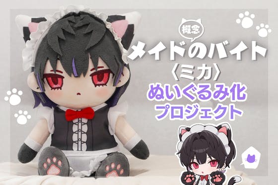 イラストレーター清水アきナが描く『ミカ』がぬいぐるみ化に挑戦します!猫耳や尻尾はもちろん、お衣装まで忠実に再現♪ お迎えすれば、あなただけのメイドとして寄り添っ...