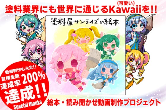 塗料販売店から生まれたアニメキャラクター「塗料屋@サンライズ」のメンバーが、小さなお子様達に色を塗ることの楽しさを伝えるべく、イラストレーターの えんどうまめ子...