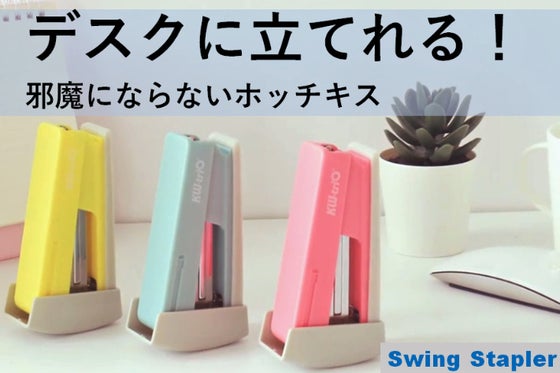 デスクに立てれるホッチキス「SwingStapler」ならデスクの上でも邪魔になりません。世界初のデザインは、おしゃれでかわいくてカラフル。立てた時には写真やメ...