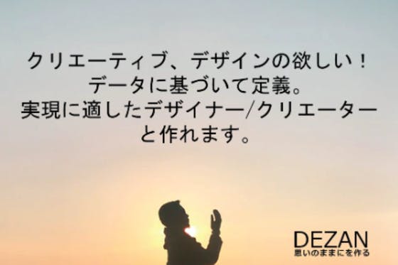 デザインやクリエーティブを作りたい!けど、作るのも、お願いするのも面倒というあなた。私どもDEZANが作りたいものを具現化し、適したデザイナー・クリエーターとお...