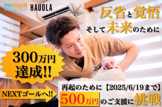皆様のおかげで300万円達成!!次の目指すゴールは500万円!HAUOLAはこれまで1万人以上の方の健康を創出してきました。急な店舗出店と想定以上の人件費・運営...