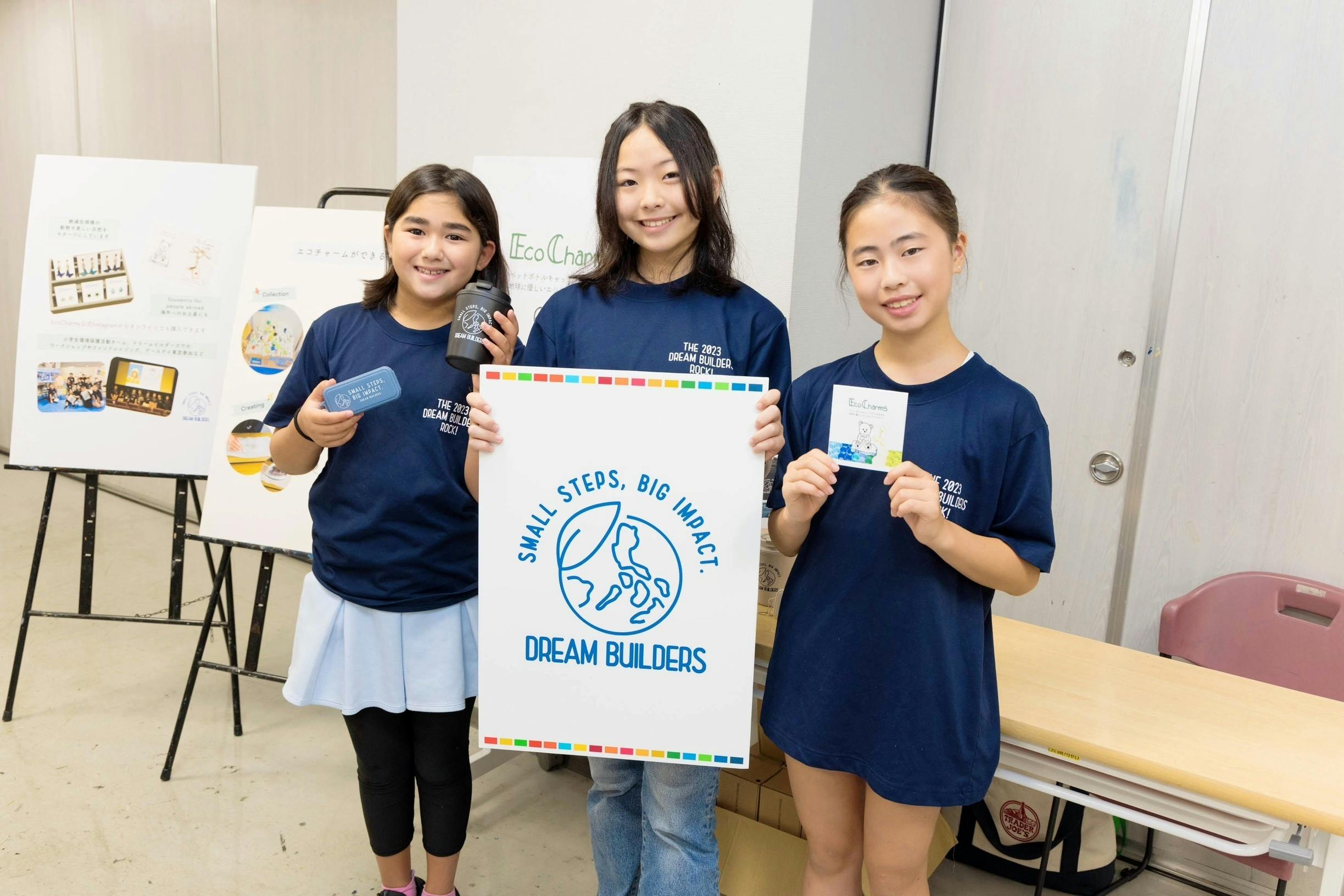 "Dream Builders"は、子どもたちが立ち上げた、地球環境の未来を守るために活動するグループです。自然や生き物、そして地球を大切に想う小学生たちが集まり、持続可能な未来のために協力し合い、自ら取り組んでいます! 私たちは、子どもたちが自分で学び成長できる場であるとともに、“小学生でもできる環境に良いこと” を大切に積み重ねることで、将来の大きな変化につながることを願って活動しています。スローガンは「Small Steps, Big Impact」です! 2023年秋には、オリジナルエコグッズの企画販売、募金活動、ワークショップ等を展開し、ユニセフを通じてアフリカに100万リットル以上の水を浄化できる量の浄水剤を寄付しました。 アースデイ東京2024では4/21(日)12:30~ヒューマントラストシネマ渋谷にて、映画『グレタ、ひとりぼっちの挑戦』上映会&グレタさんに手紙を書くイベントをD.B.とアースデイ事務局と共同開催。“Small Steps, Big Impact”をスローガンに、地球を少しでも良い場所にしていくことを目標に環境保護活動を継続しています。 これから、もっとたくさんの仲間に参加してもらえるように、チームを大きくしていきたいと思っています。応援、よろしくお願いいたします!