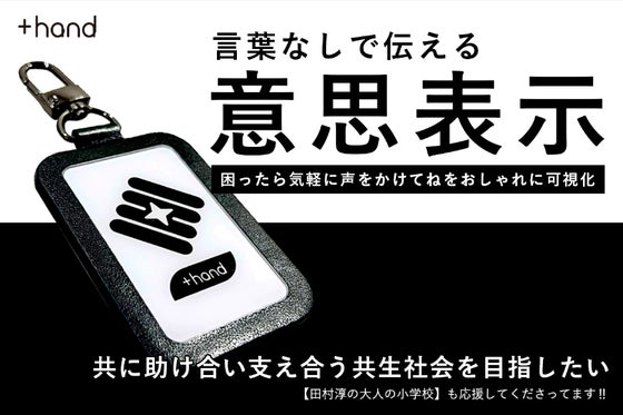 外出先での体調不良や助けが必要な際、迷わず「SOS」を出せる世の中にしたい。そこで「助けを必要とする人」と「助けたい人」をつなぐ、新たなマーク『+hand(プラ...