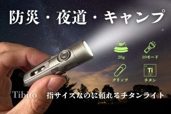 指サイズ67mm・28gのチタン製ライト。前面と側面を使い分けられる10モードを搭載。 赤色サイドライトを衣類に固定でき、夜間の歩行時に周囲へ自分の存在を示しや...