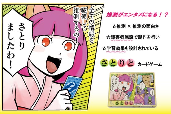 シンプルながら様々な学びも練り込まれた「さとりと」カードゲームを楽しんでいただきたい。 「推測」の面白さに改めて注目。推測の過程ではその人の個性が表れやすい。...