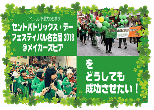 アイルランド最大のお祭り「セントパトリックス・デー」!ライブ、パレード、マルシェイベントなどを名古屋「メイカーズピア」で開催します。世界中で盛り上がるこのイベン...