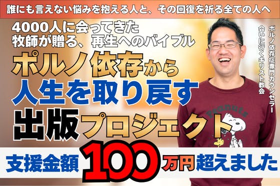 2026年の3月12日に書籍『ポルノ依存症から3ヶ月で抜け出す方法(仮)』を出版予定です。この書籍の販促を通して、ポルノに悩む人の力になりたい。また青少年の予防...