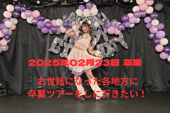 2025年2月23日行われる、卒業ライブの資金にしたい。 また、沢山資金が集まった場合は、各地方お世話になったところにツアーに行きたい。 今までお世話になっ...