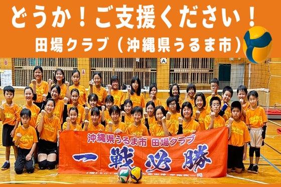 私達は、沖縄県で活動している小学生バレーボールチーム『田場クラブ』です。来年1月に開催される宮崎県・熊本県大会への出場を叶えさせてください!よろしくお願いします!!!