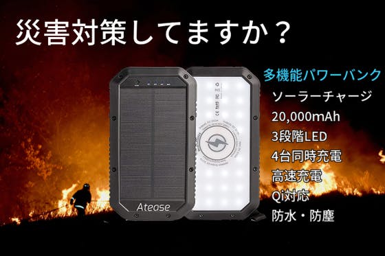チャージ方法は2つ。USBチャージとソーラーチャージ。災害時は太陽光からチャージが可能です。一度に4台まで充電が可能です。一台はワイヤレス充電(Qi対応機種)3...